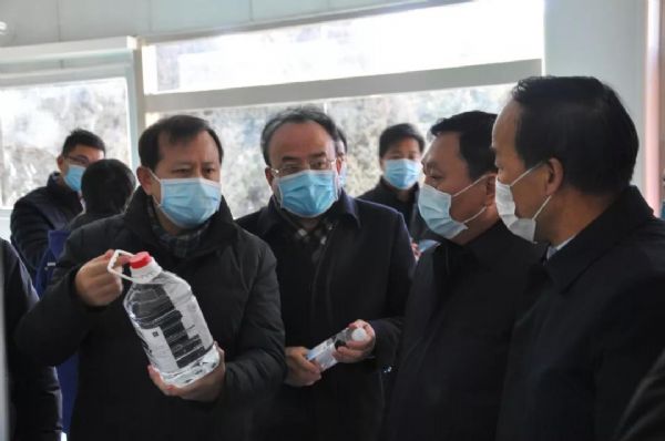 在前往消毒液生產一線的路上,公司常務副總經理宋敏平向柳鵬書記一行匯報了防疫工作及公司生產情況,柳鵬書記在聽取后,對我公司疫情防控工作給予了充分肯定,并提出幾點要求:一是公司現(xiàn)階段在崗上班的工作人員有200余人,對防控工作應有更高要求,更高標準、更嚴管理,內控、外控要更加細致;二是疫情期間,要科學制定有效工作措施,確保疫情防控工作與復工復產兩手抓、兩不誤;三是普安股份現(xiàn)生產的宣肺止嗽合劑及75%乙醇消毒液均是抗疫防疫的重要物資,普安股份作為武威市的先鋒企業(yè),應在特殊時期奮勇向前,加大產能,努力為全市乃至全省的防疫工作做出杰出貢獻。