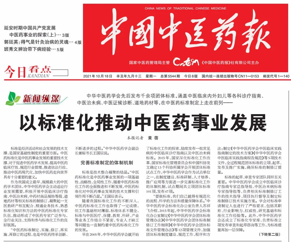 作為我國成立最早、規(guī)模最大的中醫(yī)藥學(xué)術(shù)團(tuán)體,中華中醫(yī)藥學(xué)會(huì)主動(dòng)適應(yīng)行業(yè)發(fā)展需要,積極開展中醫(yī)臨床診療指南、中醫(yī)治未病、中藥材商品規(guī)格等級(jí)、道地藥材等相關(guān)標(biāo)準(zhǔn)的制修訂,凝聚起一支醫(yī)教研產(chǎn)相互配合、精通業(yè)務(wù)技術(shù)、熟悉標(biāo)準(zhǔn)化知識(shí)和方法的中醫(yī)藥標(biāo)準(zhǔn)化專家隊(duì)伍,推動(dòng)形成了中醫(yī)藥專家廣泛參與,全行業(yè)關(guān)注、支持和參與標(biāo)準(zhǔn)化工作的良好氛圍。