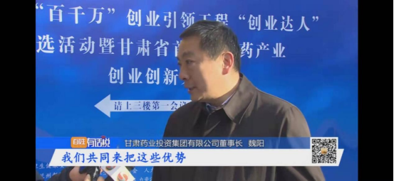 甘肅藥業(yè)投資集團魏陽董事長以特邀嘉賓身份出席此次中醫(yī)藥創(chuàng)業(yè)創(chuàng)新大賽開幕典禮,在觀展后被甘肅省廣播電視總臺、視聽甘肅、今日頭條、甘肅青春調(diào)頻等眾多媒體邀請,就關(guān)于此次中醫(yī)藥產(chǎn)業(yè)創(chuàng)業(yè)創(chuàng)新大賽做了相關(guān)的采訪。
