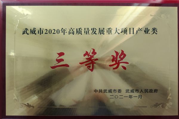 又獲獎(jiǎng)了!獎(jiǎng)金100萬元!普安制藥榮獲武威市2020年高質(zhì)量發(fā)展重大項(xiàng)目產(chǎn)業(yè)類三等獎(jiǎng)!