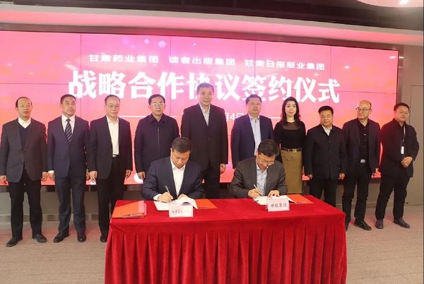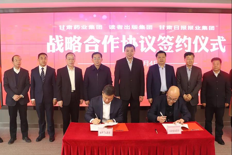 甘肅藥業(yè)集團和讀者出版集團有限公司、甘肅日報報業(yè)集團有限責(zé)任公司在甘肅新媒體集團舉行戰(zhàn)略合作簽約儀式,竇生銘代表集團公司簽署協(xié)議。