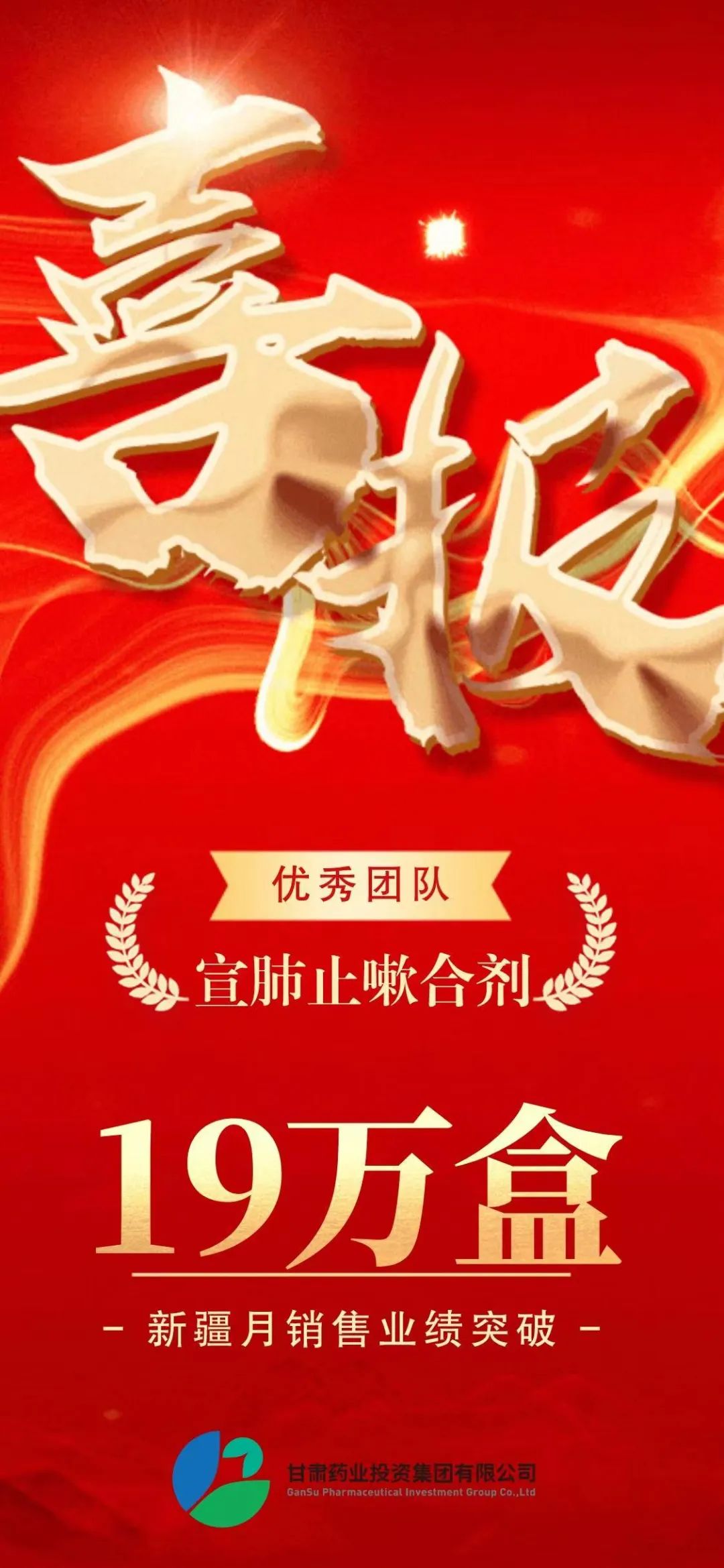 喜報!宣肺止嗽合劑新疆月銷售業(yè)績突破19萬盒