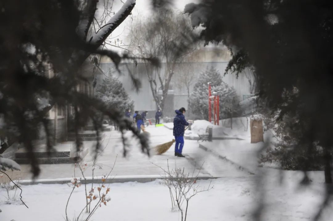 盡管風(fēng)很大,臉被吹的通紅,盡管氣溫很低,手被凍得發(fā)僵,但大家齊心協(xié)力,你鏟我掃,輪流上陣,熱火朝天的掃雪場(chǎng)面和團(tuán)結(jié)的力量讓這個(gè)冬日顯得格外溫暖,忙碌的身影構(gòu)成了道道亮麗的風(fēng)景線。