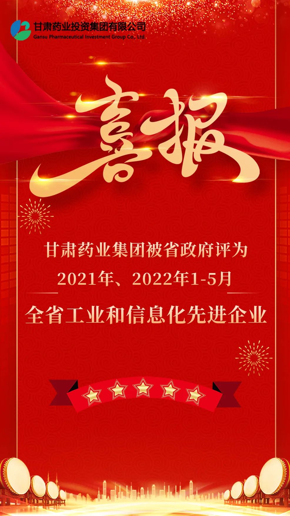 甘肅藥業(yè)集團(tuán)被省政府評(píng)為2021年、2022年1-5月全省工業(yè)和信息化先進(jìn)企業(yè)