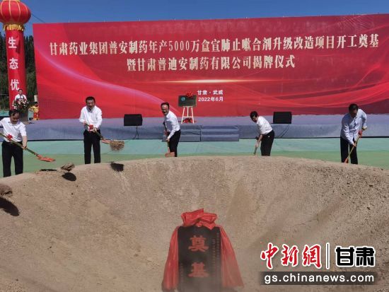 6月15日,在武威市涼州區(qū)舉行了甘肅藥業(yè)集團普安制藥年產5000萬盒(3億支)宣肺止嗽合劑升級改造項目開工奠基暨甘肅普迪安制藥有限公司成立揭牌儀式。