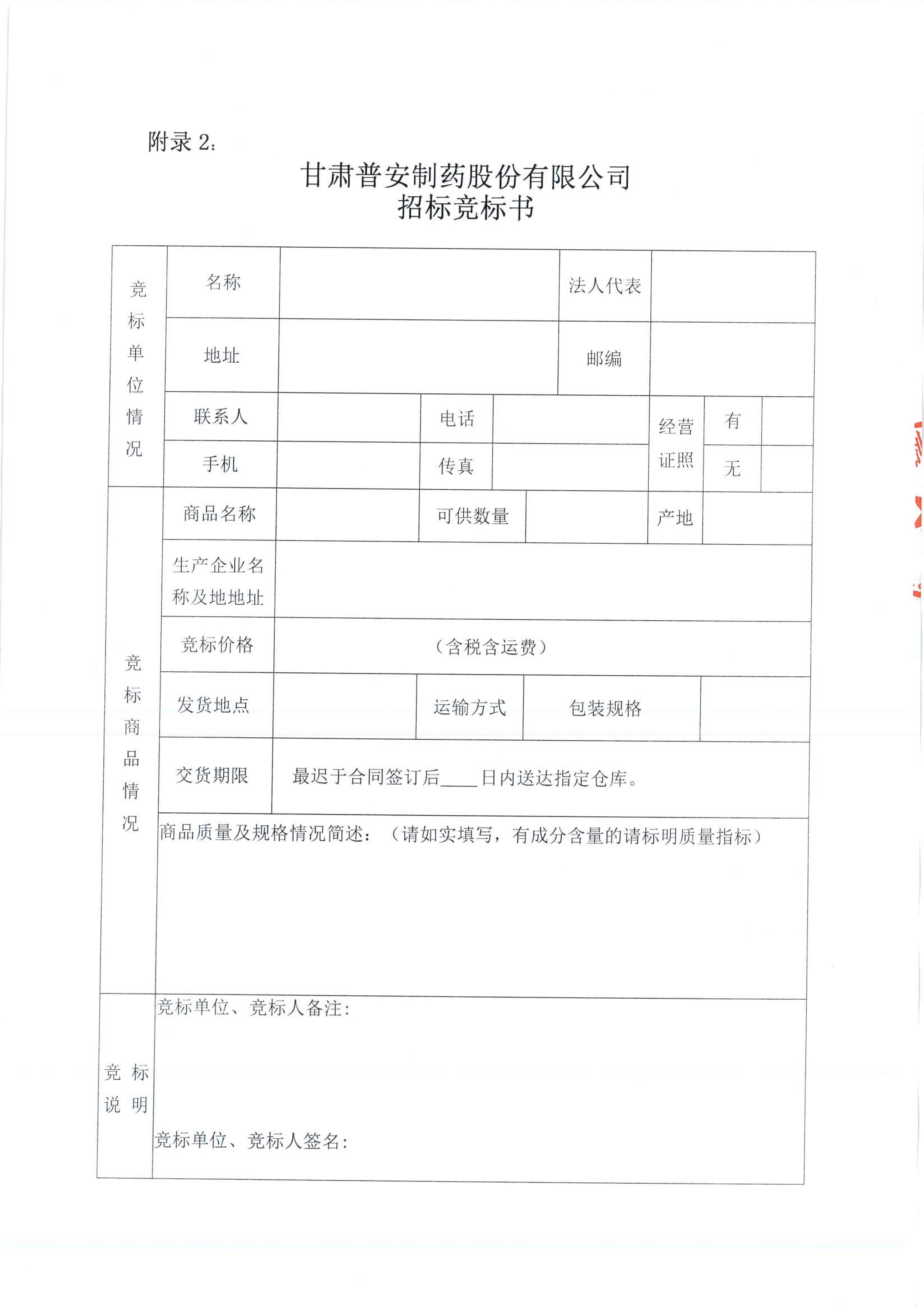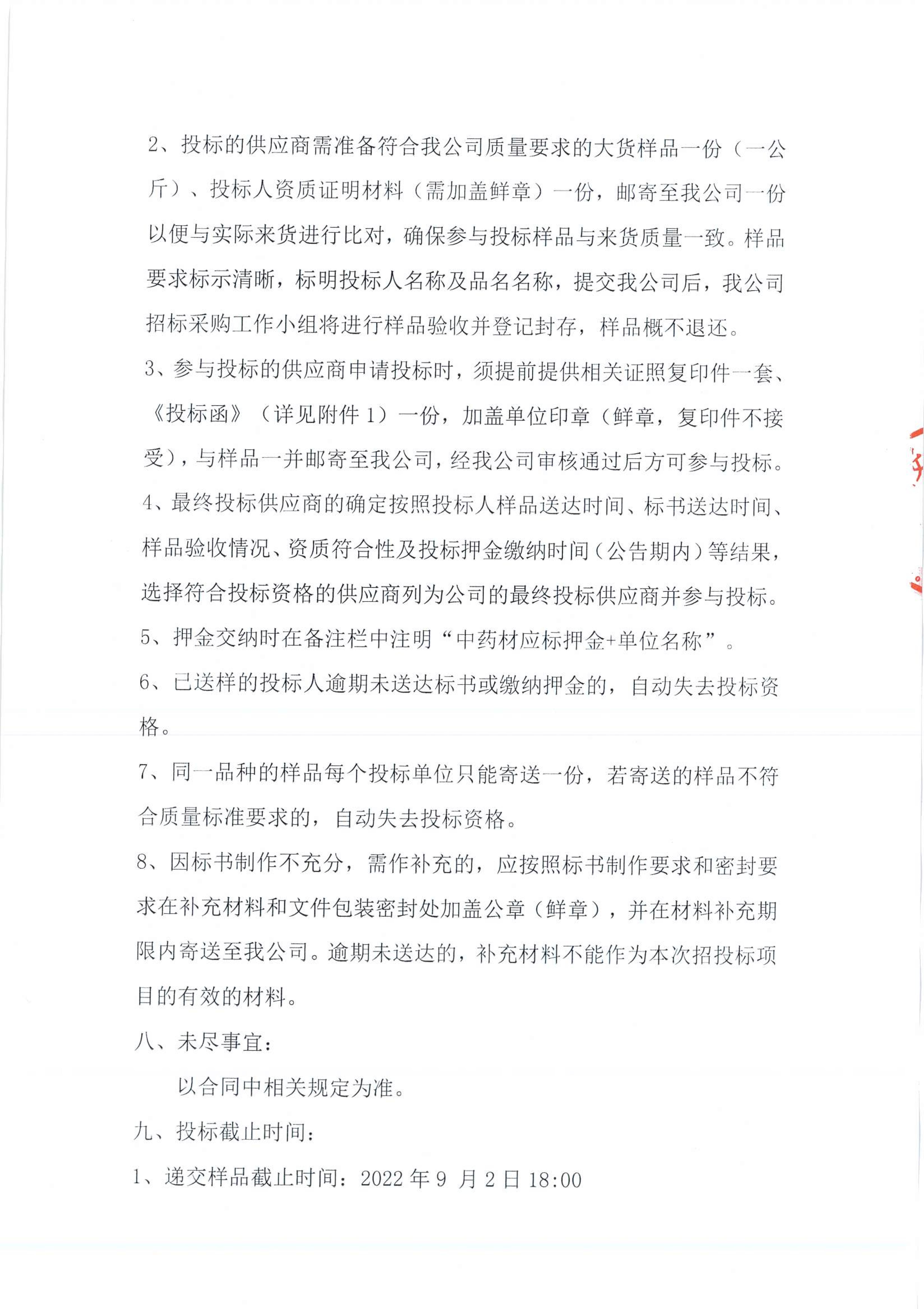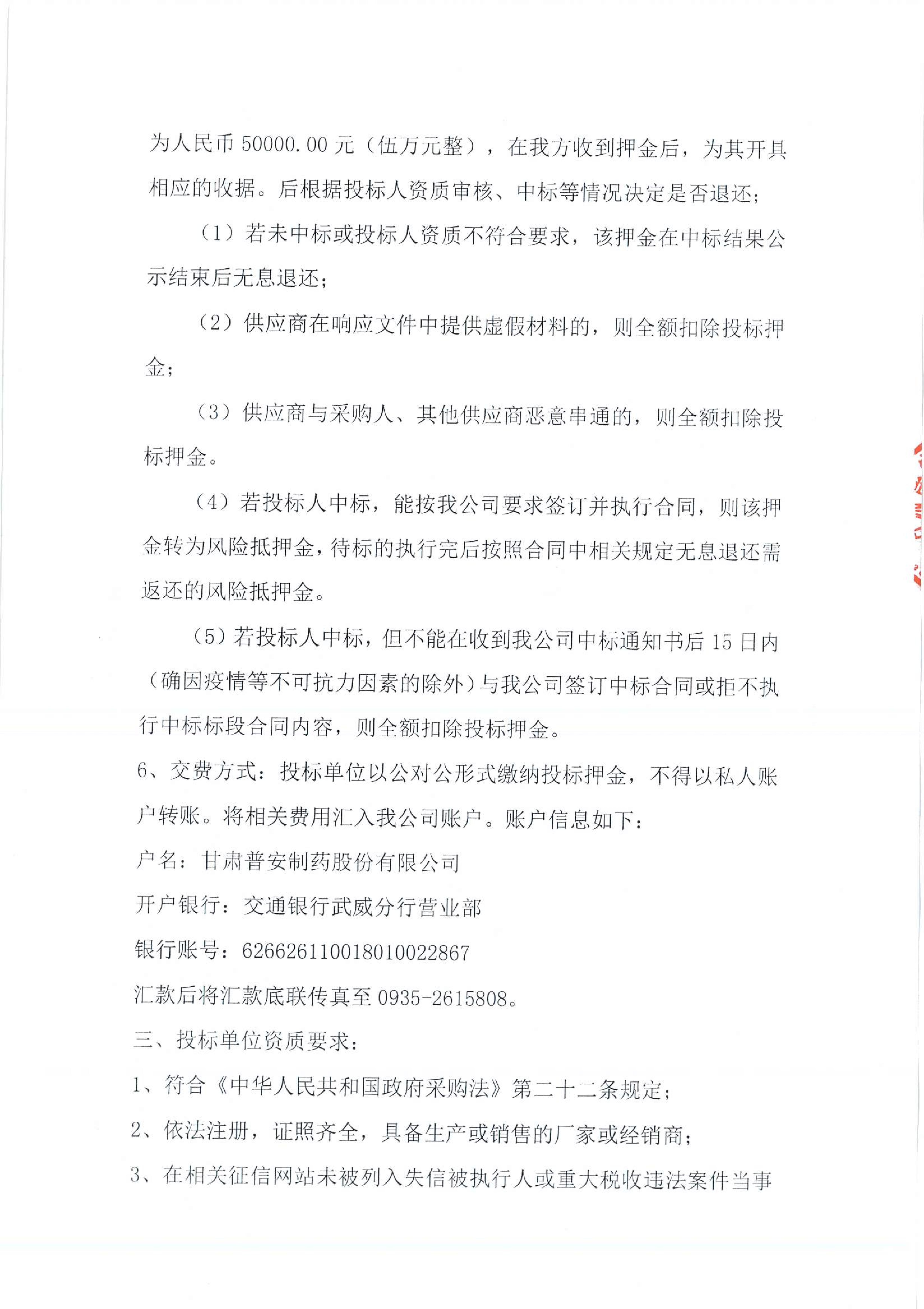 甘肅普安制藥股份有限公司2022年10月-2023年10月中藥材招標(biāo)采購(gòu)公告