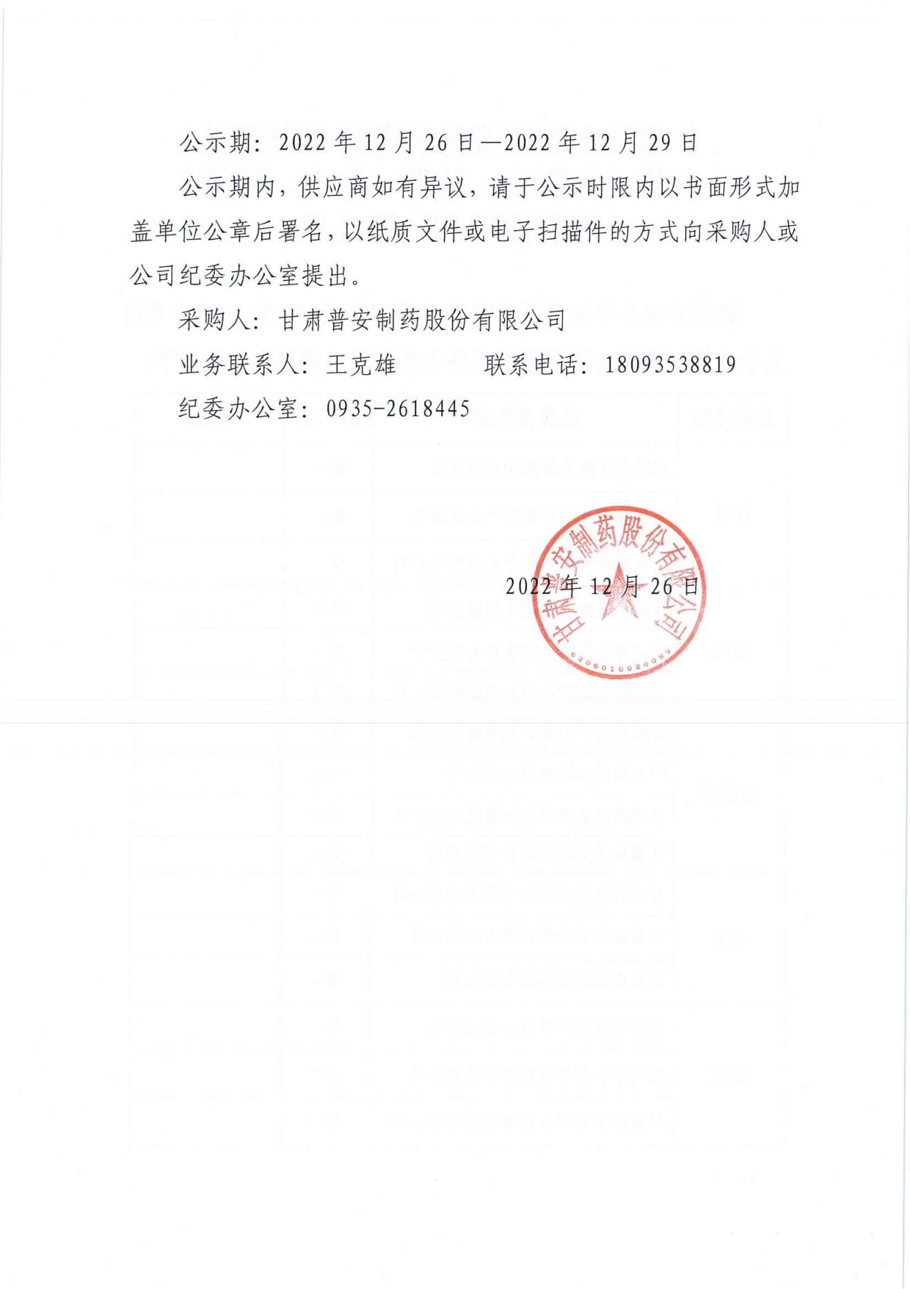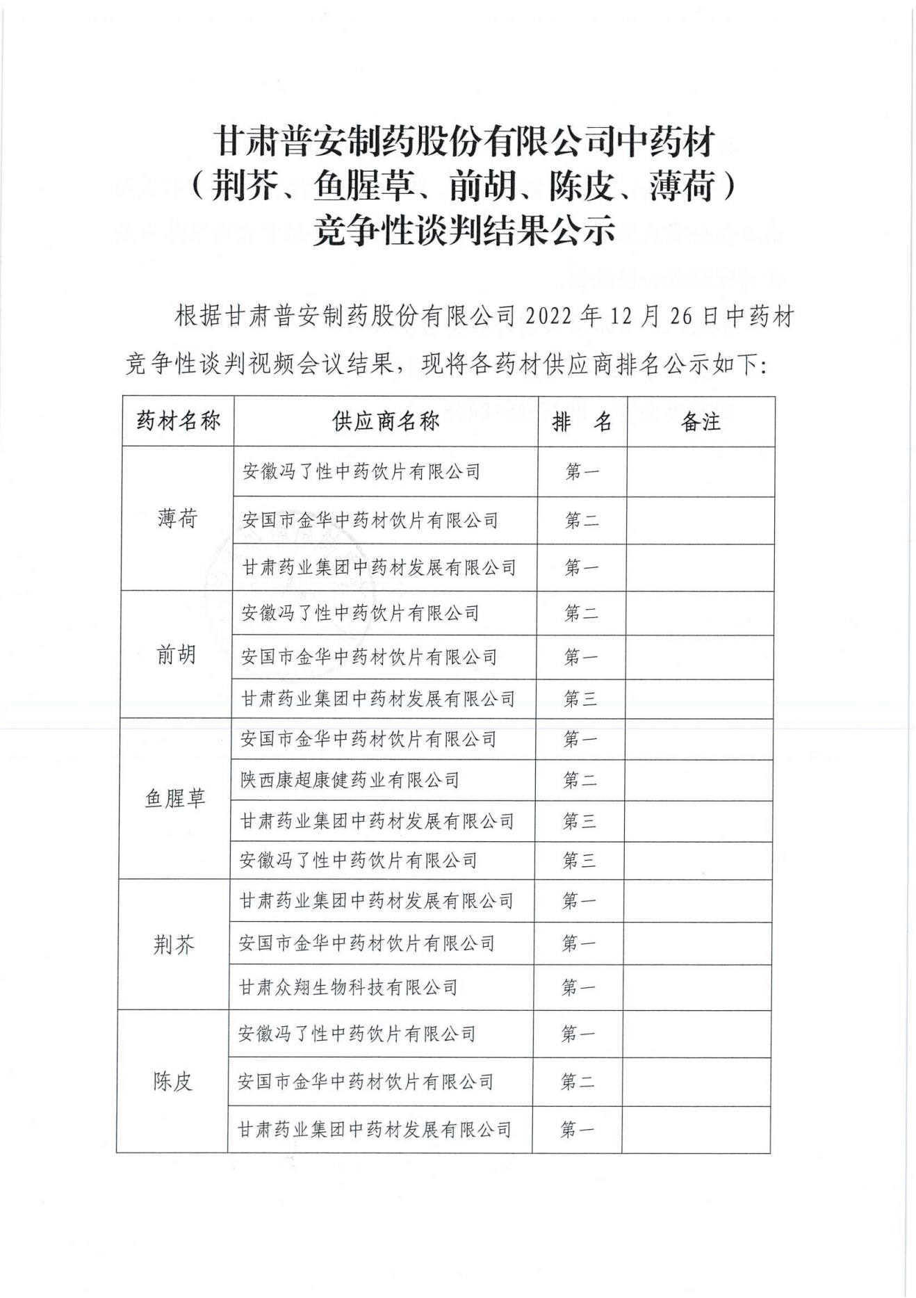 甘肅普安制藥股份有限公司 中藥材(荊芥、魚腥草、前胡、陳皮、薄荷)競爭性談判結(jié)果公示