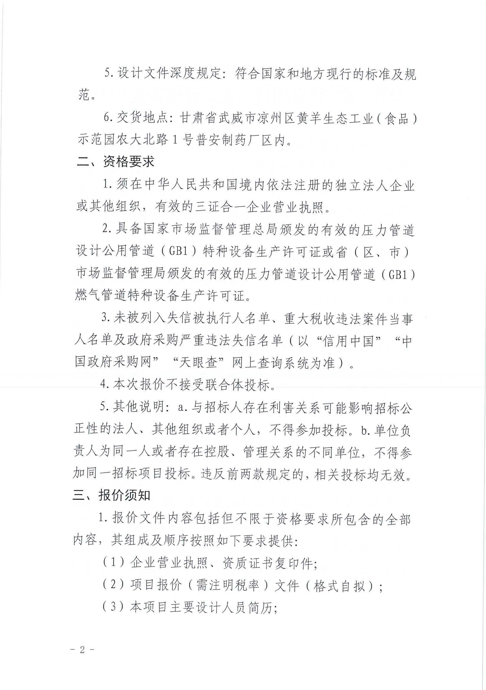 甘肅普安制藥股份有限公司15T/h鍋爐建設(shè)項(xiàng)目工藝設(shè)計(jì)報(bào)價(jià)邀請(qǐng)公告