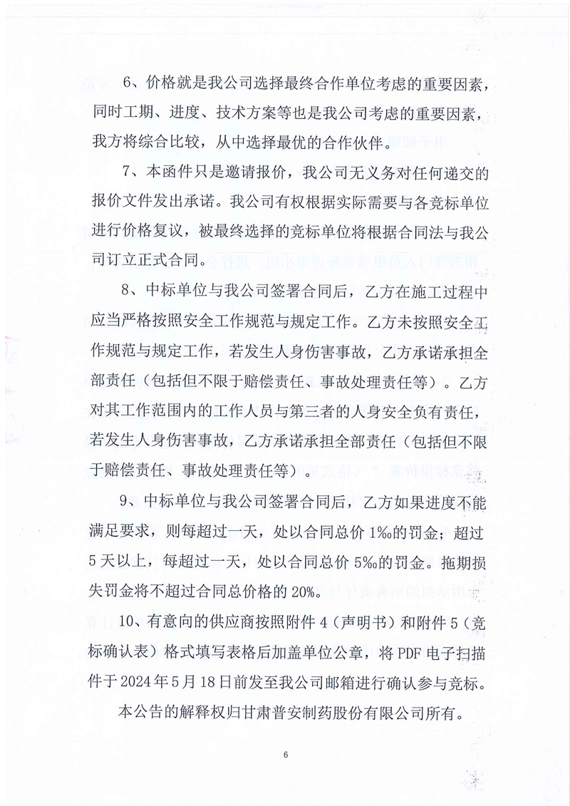 甘肅普安制藥股份有限公司2024年基礎設施改造項目-舊污水站設備設施及廠房拆除工程競爭性磋商公告