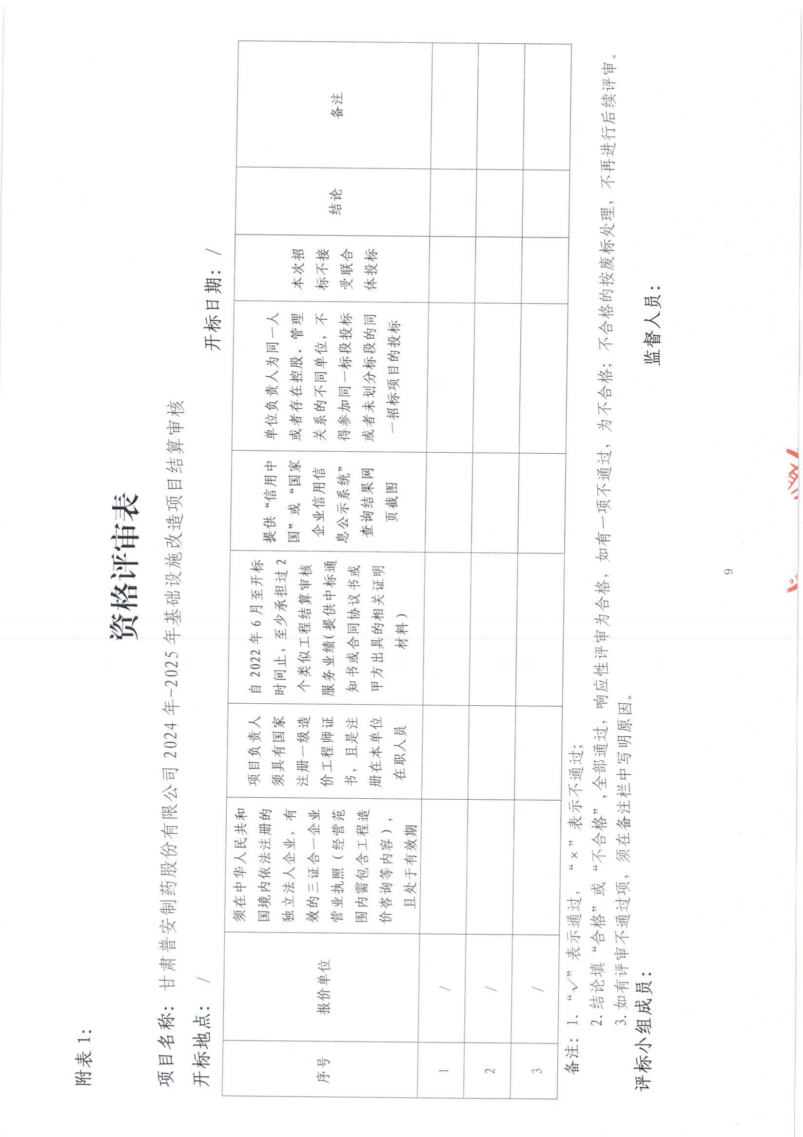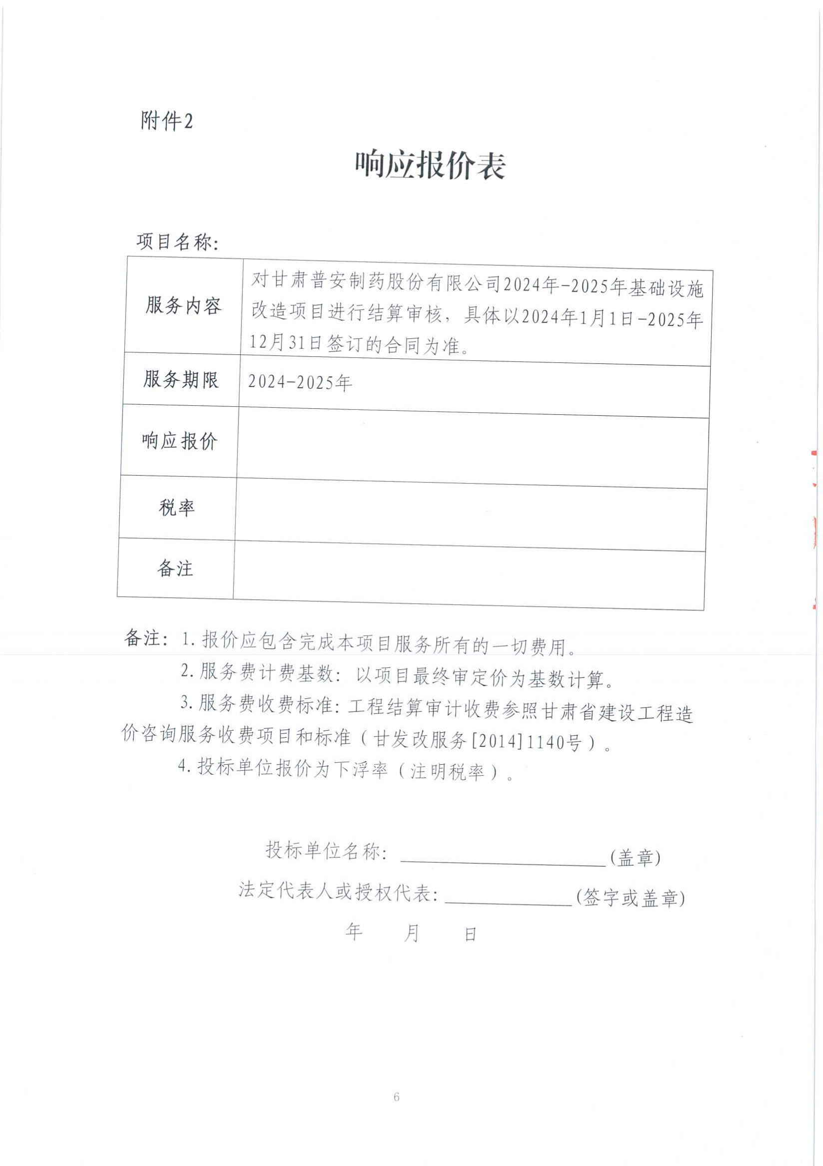 甘肅普安制藥股份有限公司2024年-2025年基礎(chǔ)設(shè)施改造項(xiàng)目結(jié)算審核服務(wù)第二次招標(biāo)公告