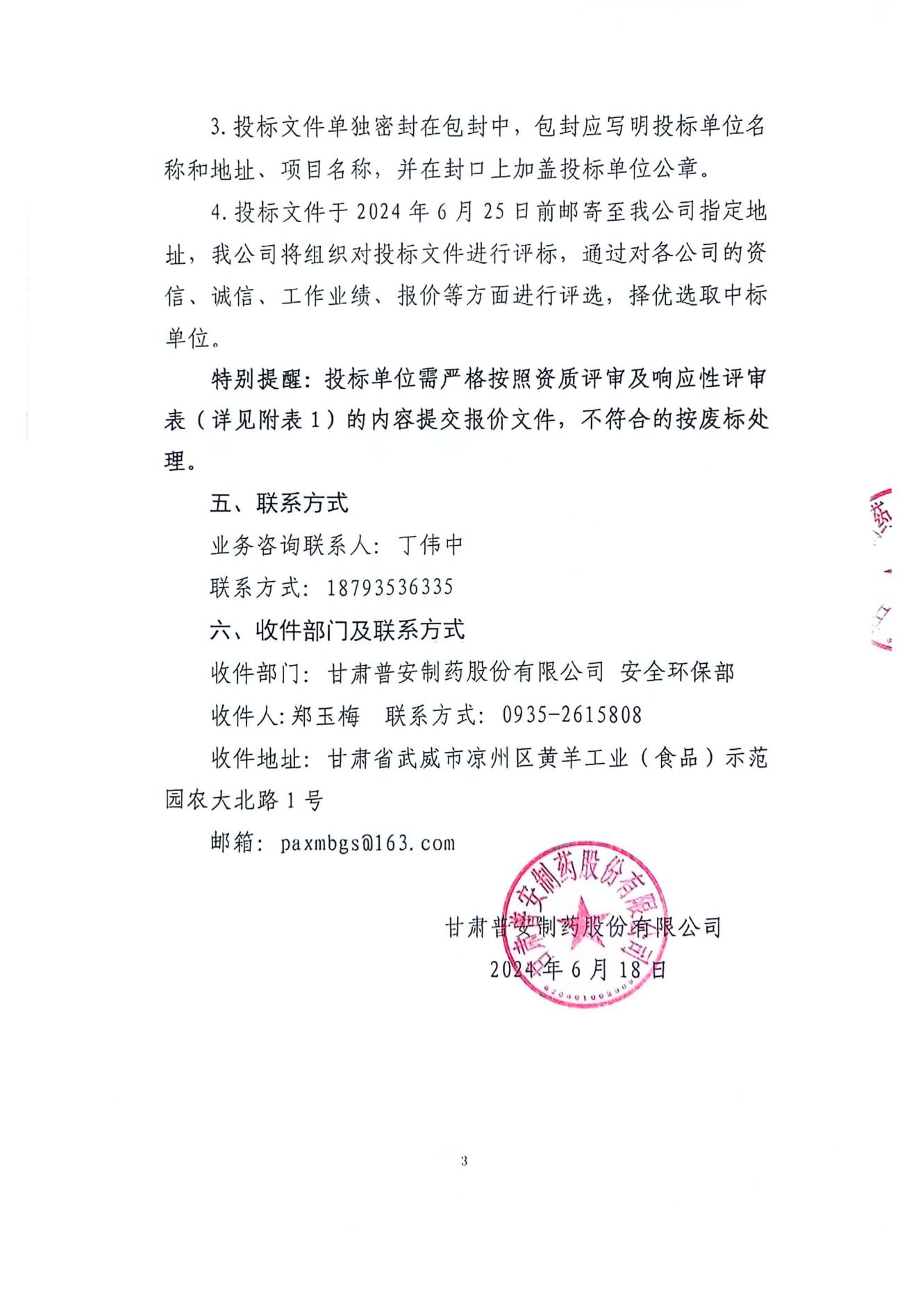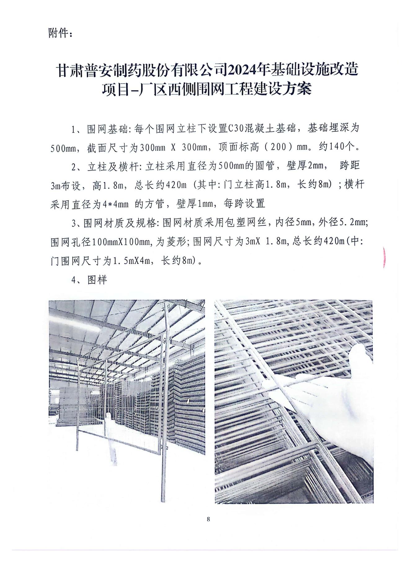 甘肅普安制藥股份有限公司2024年基礎(chǔ)設(shè)施改造項(xiàng)目-廠區(qū)西側(cè)圍網(wǎng)工程招標(biāo)公告