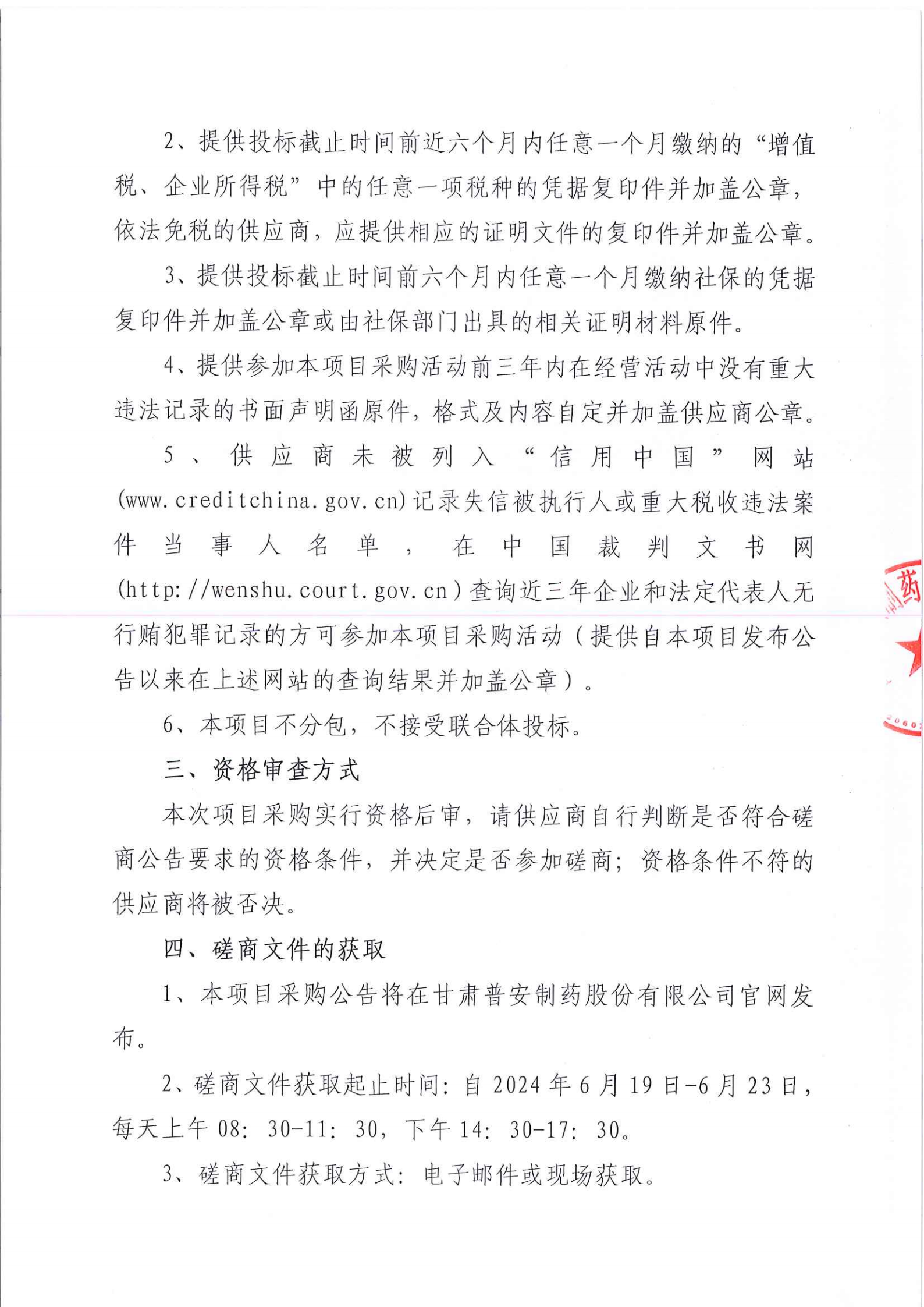 甘肅普安制藥股份有限公司年產5000萬盒(3億支)宣肺止嗽合劑等液體制劑生產線升級改造項目二期檢驗設備(普通儀器)采購競爭性磋商公告