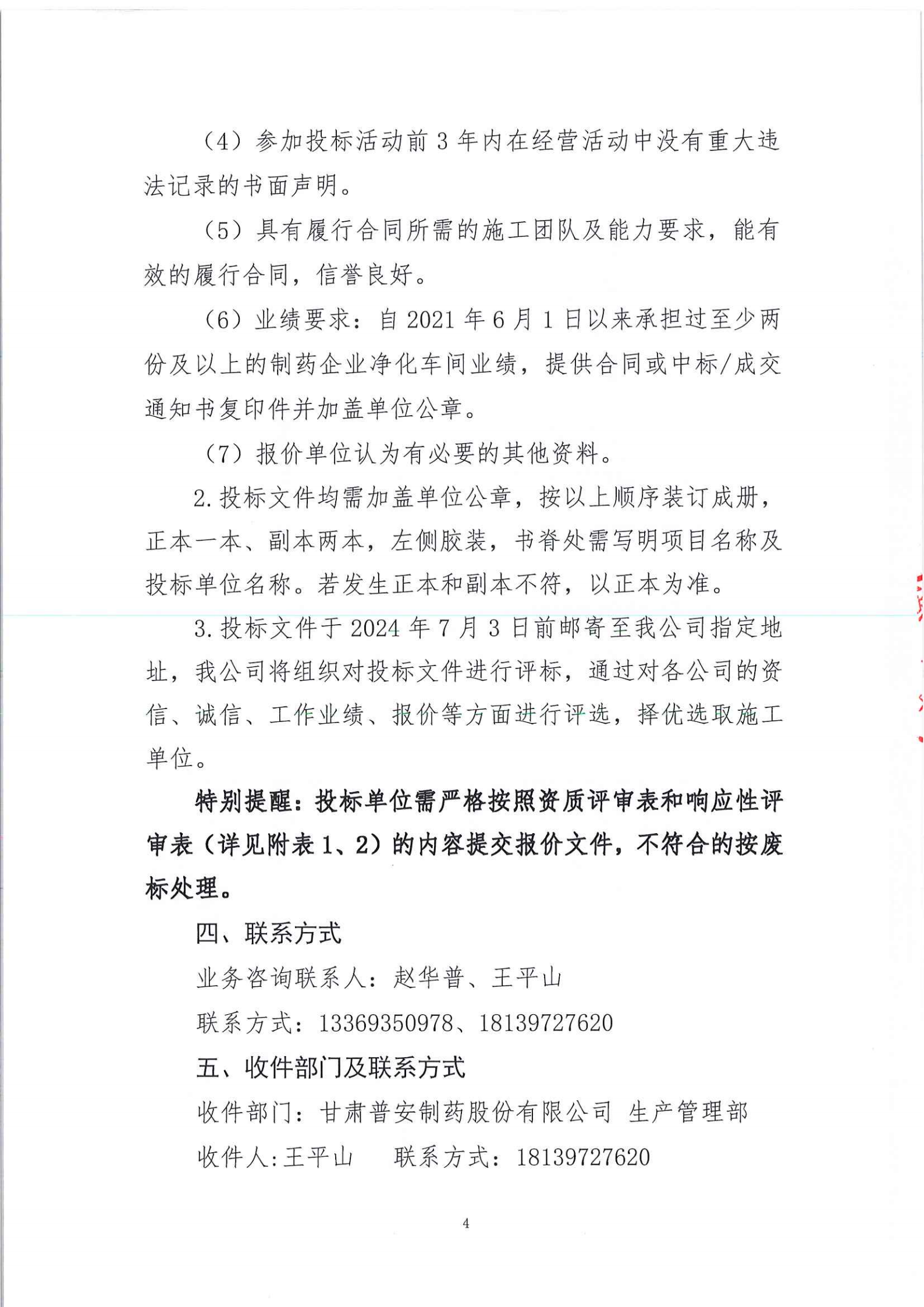甘肅普安制藥股份有限公司2024年基礎(chǔ)設(shè)施改造項(xiàng)目-提取車間部分彩鋼廠房改造施工招標(biāo)公告