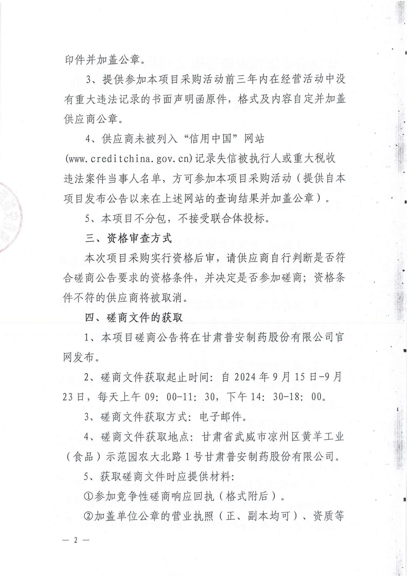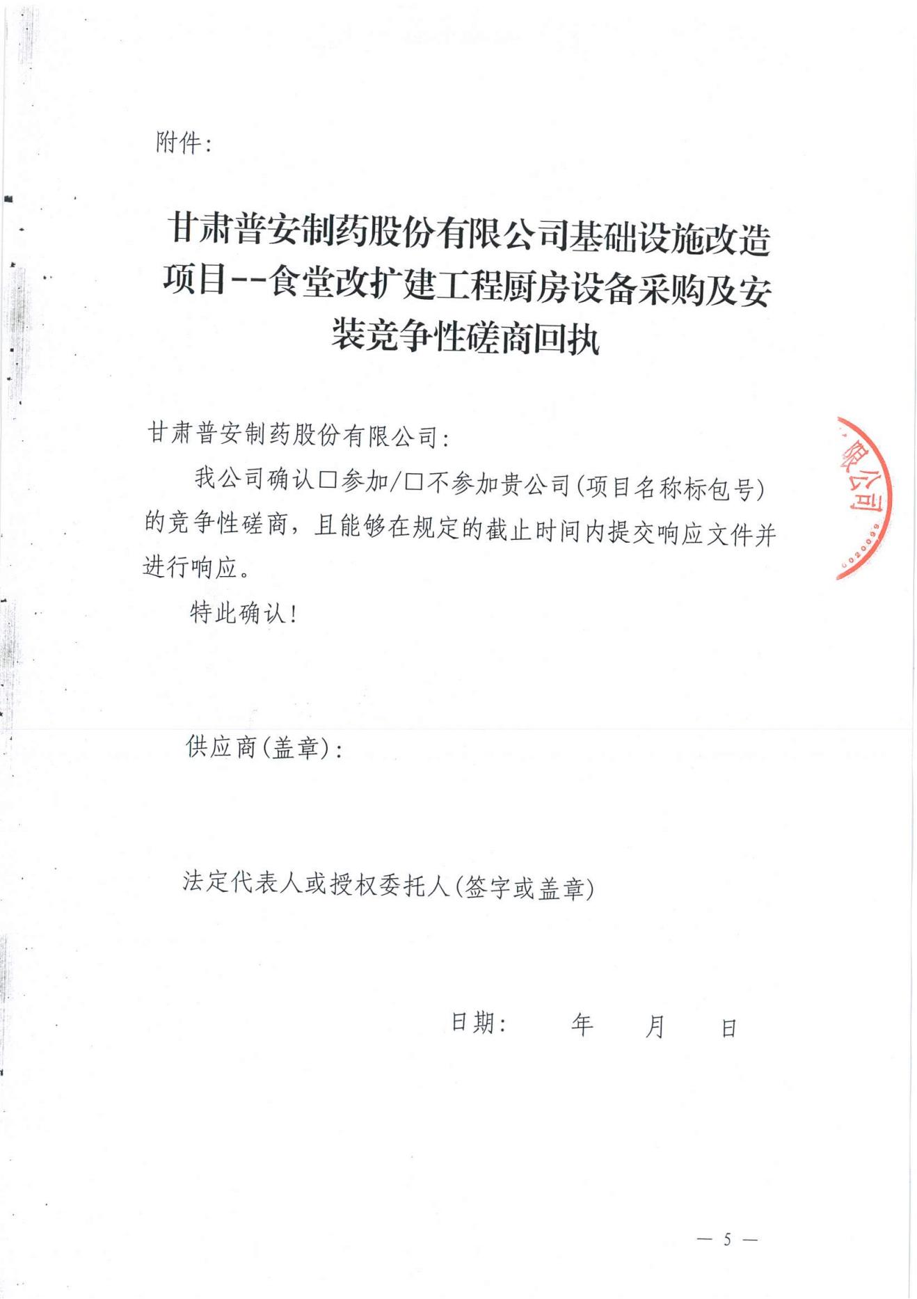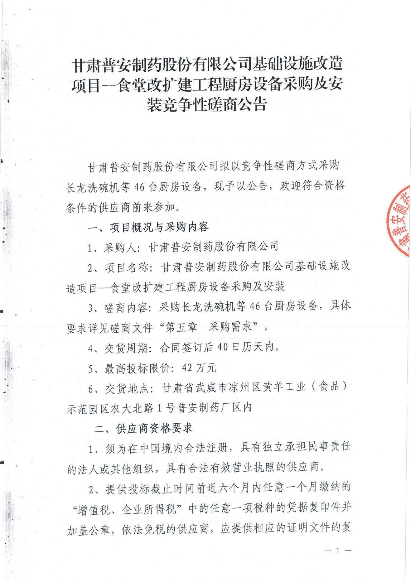 甘肅普安制藥股份有限公司基礎(chǔ)設(shè)施改造項(xiàng)目--食堂改擴(kuò)建工程廚房設(shè)備采購及安裝競爭性磋商公告