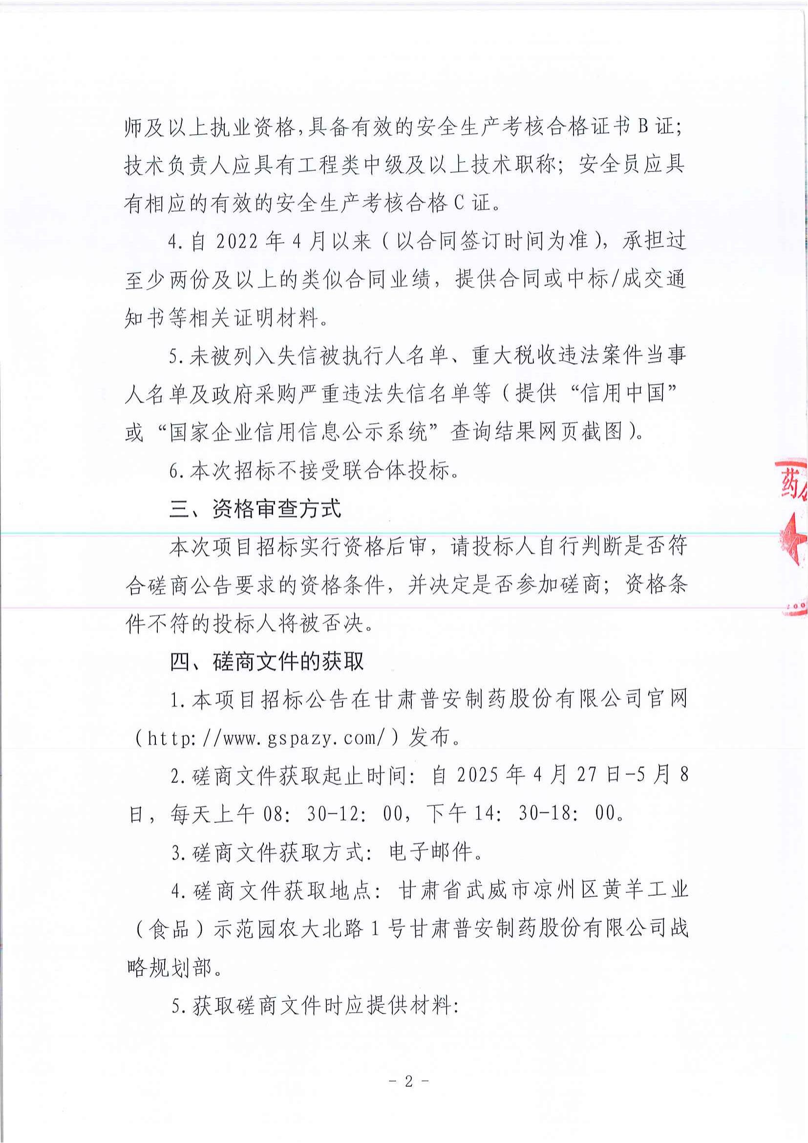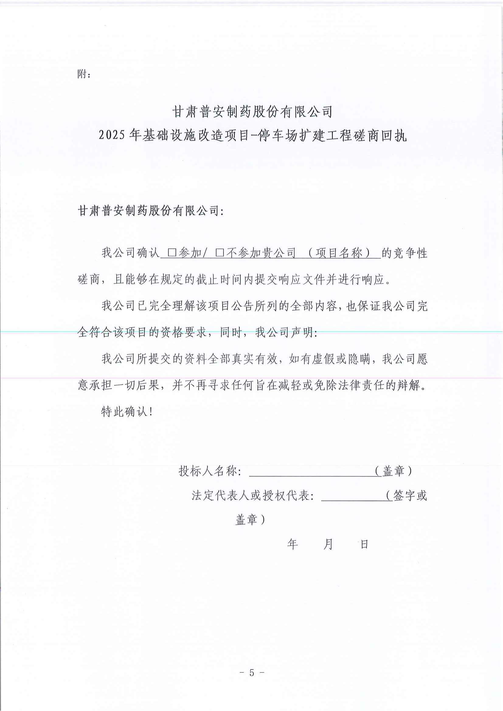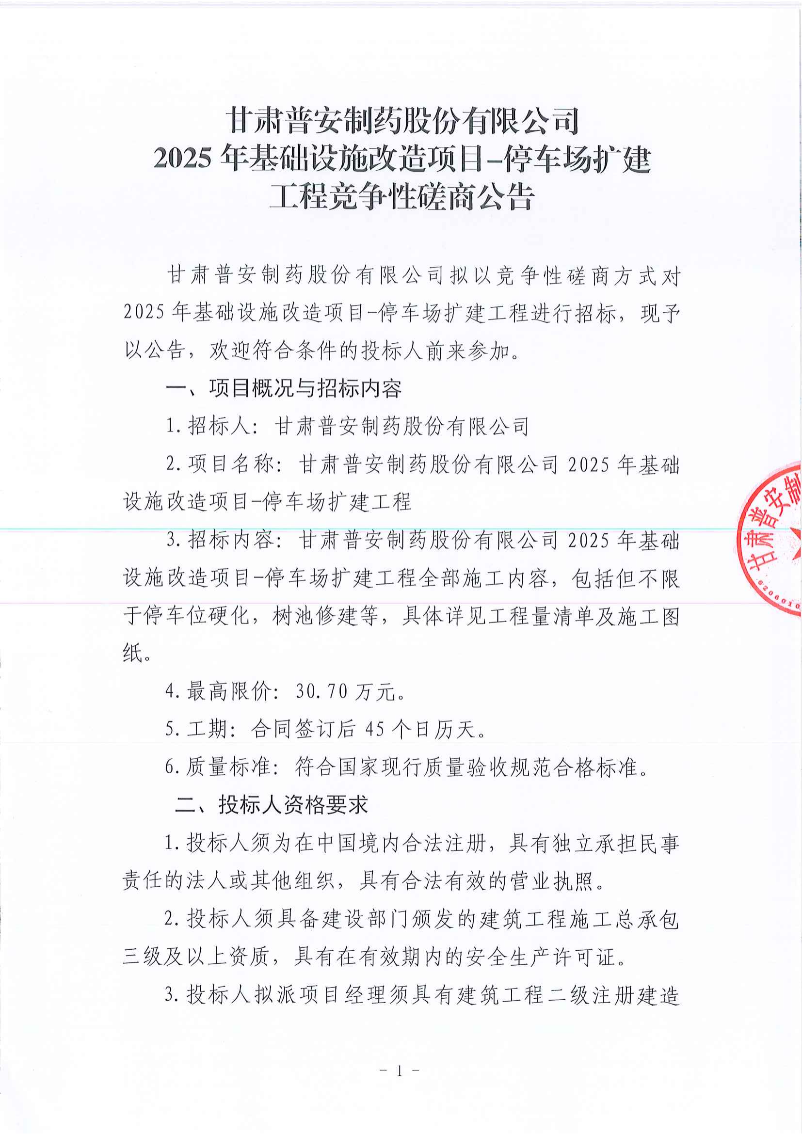 甘肅普安制藥股份有限公司2025年基礎(chǔ)設(shè)施改造項(xiàng)目——停車場擴(kuò)建工程競爭性磋商公告