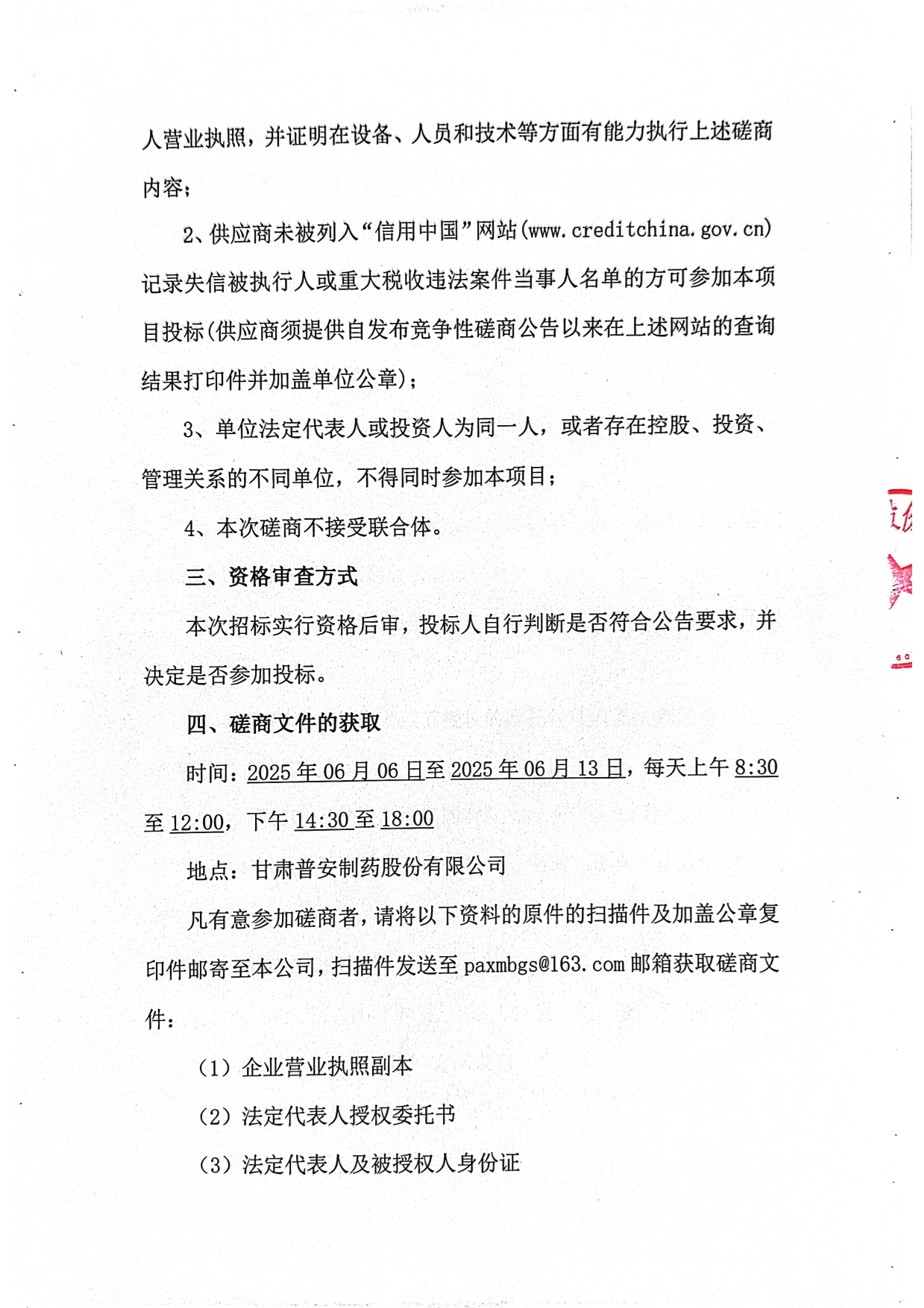 甘肅普安制藥股份有限公司2臺15噸燃煤蒸汽鍋爐外包運營服務(wù)競爭性磋商公告